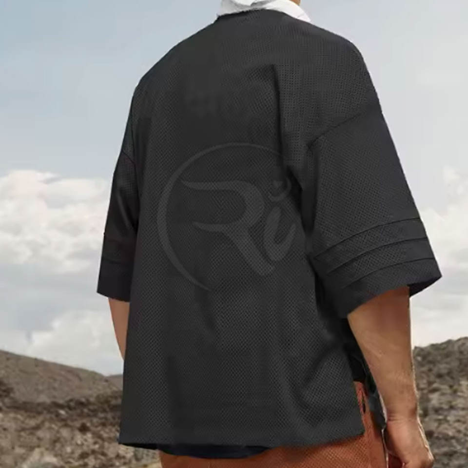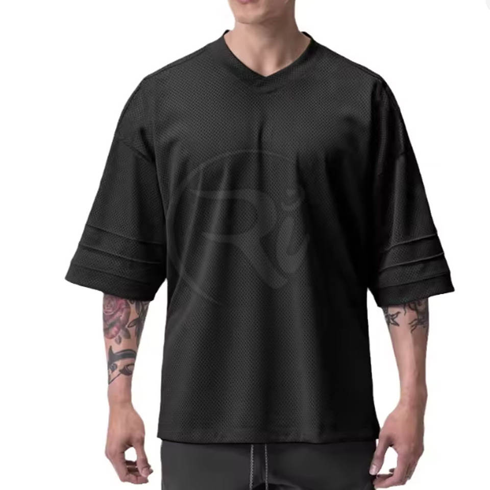 Nombre del producto:Camiseta de malla oversize con cuello en V