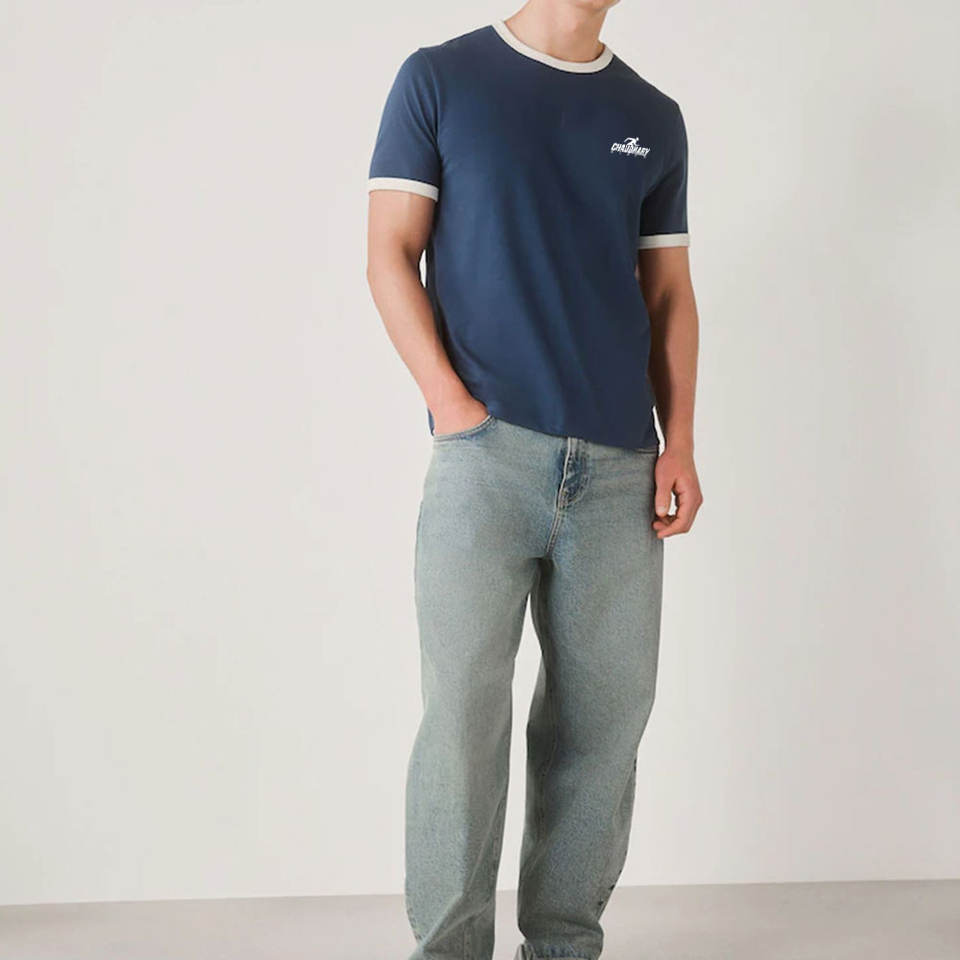 Camiseta Casual Ringer de Algodón Transpirable para Actividades Diarias y Ajuste Relajado