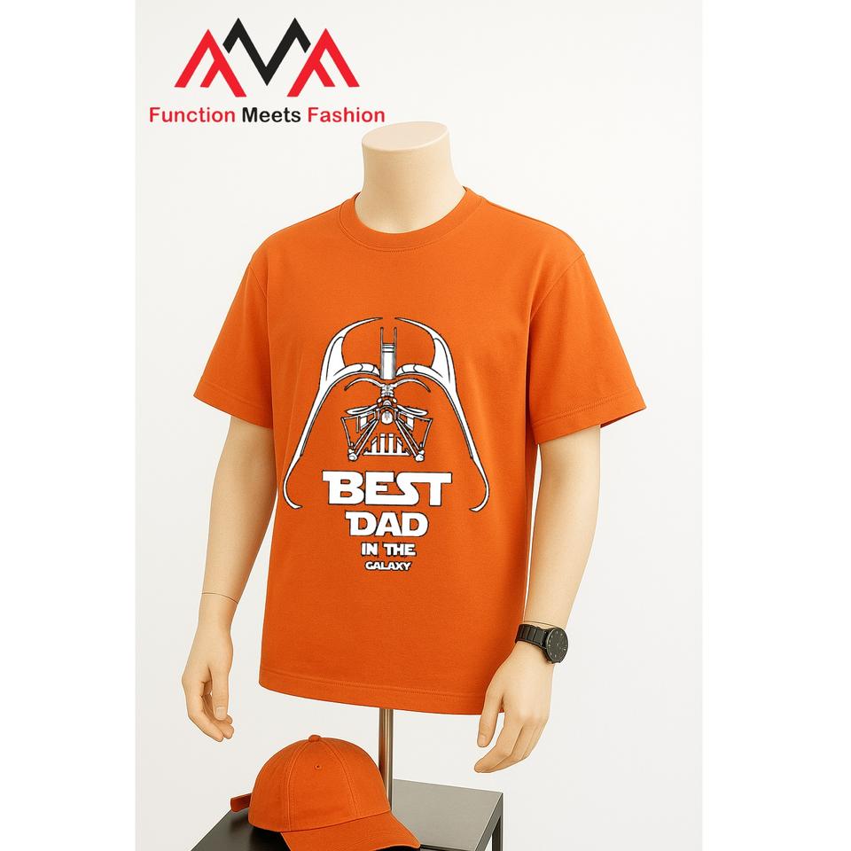 Camiseta Casual de Manga Corta con Estampado Gráfico Transpirable de Mezcla de Algodón y Terileno (TC) de Corte Regular Color Naranja de Vietnam