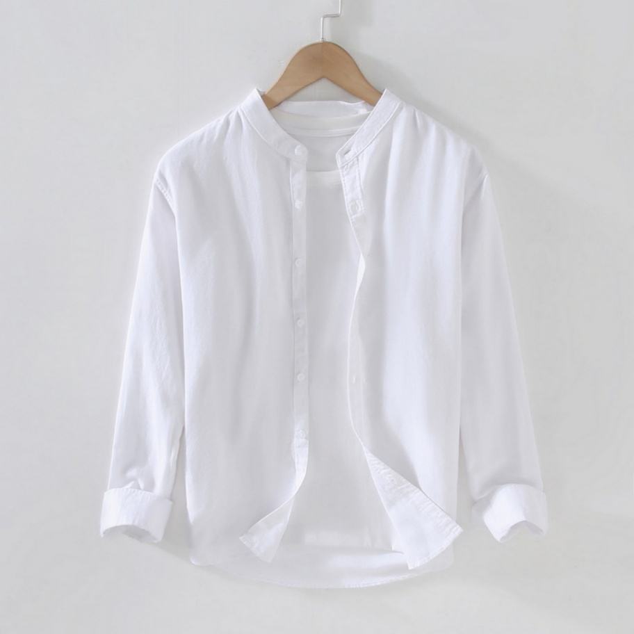 Product name:Stand collar Casual Solid Color Linen Shirt men