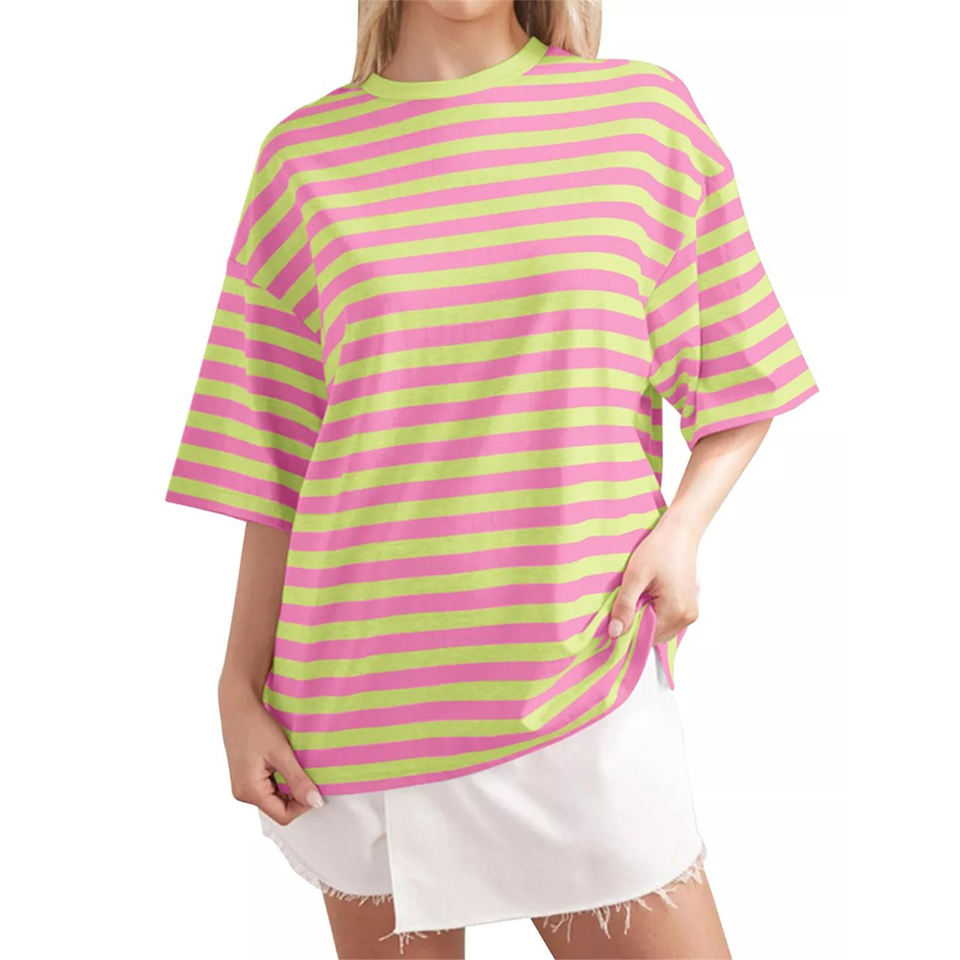 Nombre del producto:Las mujeres de gran tamaño de rayas camisetas de manga corta