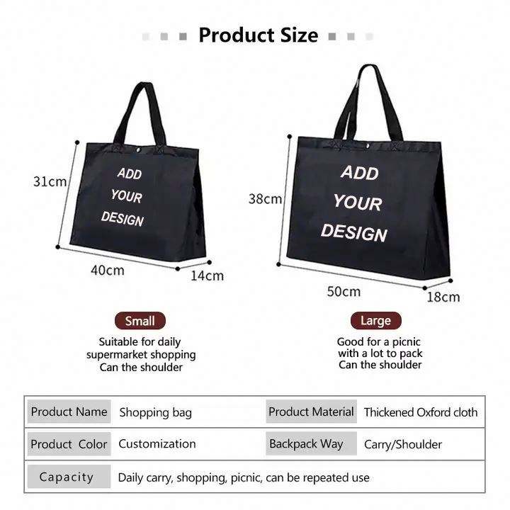 Bolsas de Compras con Logotipo Personalizado, Estilo Casual y Versátil, Bolsa de Compras Plegable de Poliéster de Gran Capacidad