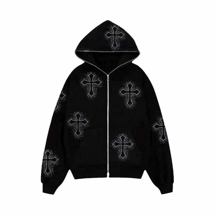 Ropa informal térmica de cara completa con cremallera sudaderas con capucha 100% algodón personalizado Bling Rhinestone DISEÑO DE Sudadera con capucha precio más bajo tela transpirable