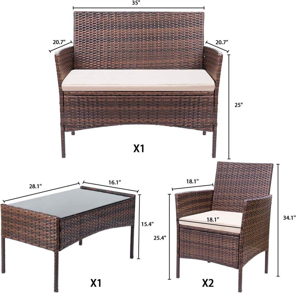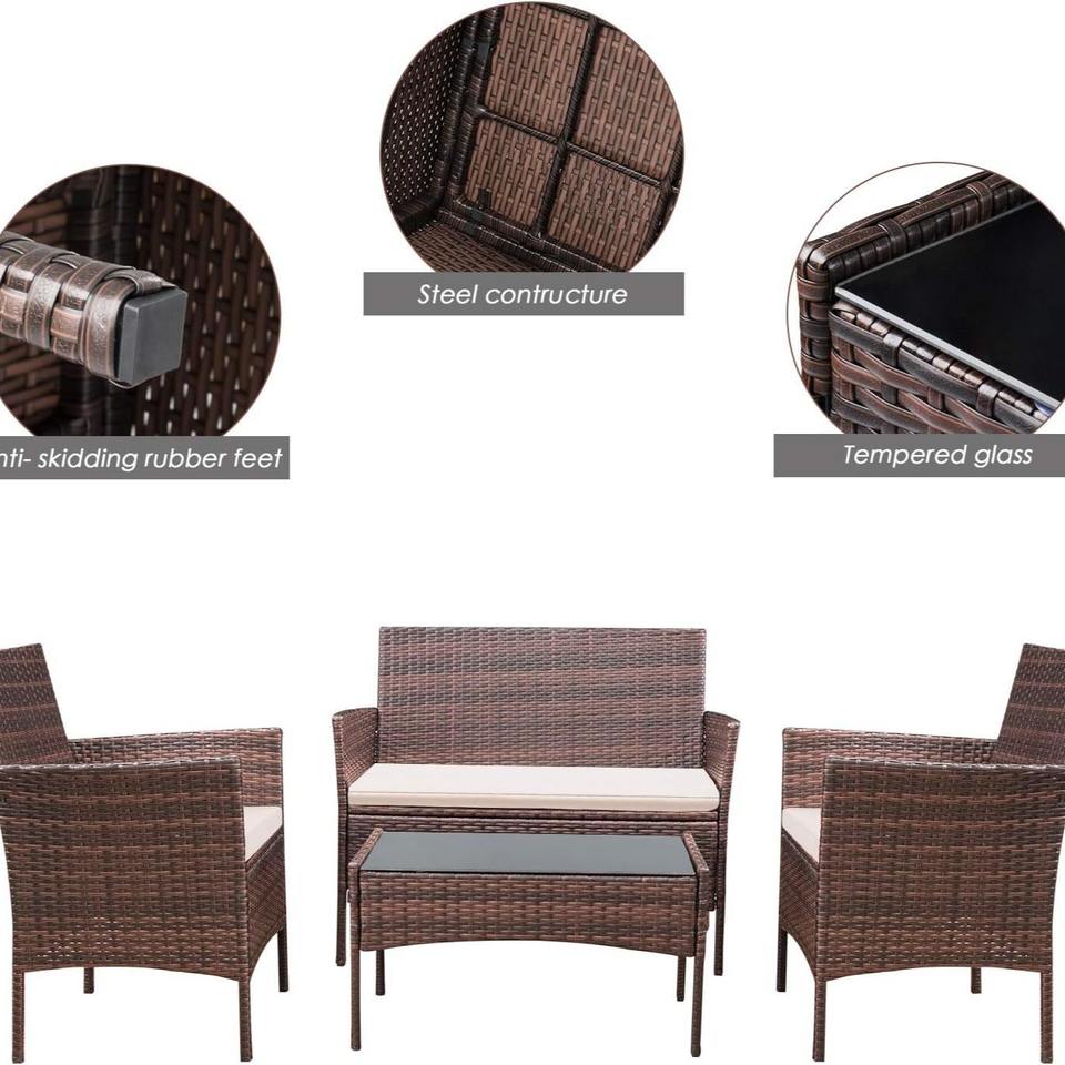 Sofá de mimbre de protección solar impermeable informal, sofá de mimbre para exteriores, patio, muebles de exterior, sofá de jardín