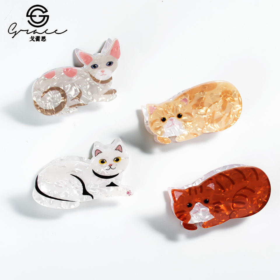 Pinza para el Pelo de Acrílico Dulce con Estampado de Gato de Dibujos Animados de 8cm Accesorios Adorables de Animales para Niños Nuevo Producto de Agosto Gurex A1-2