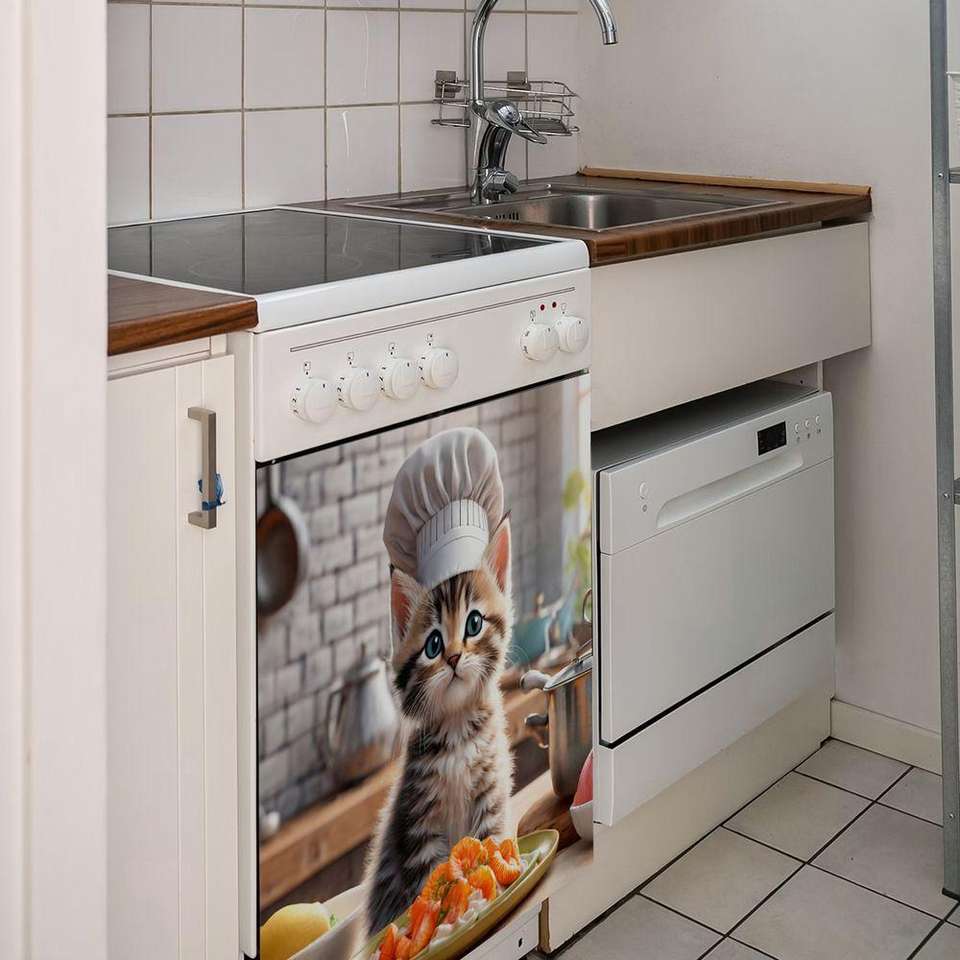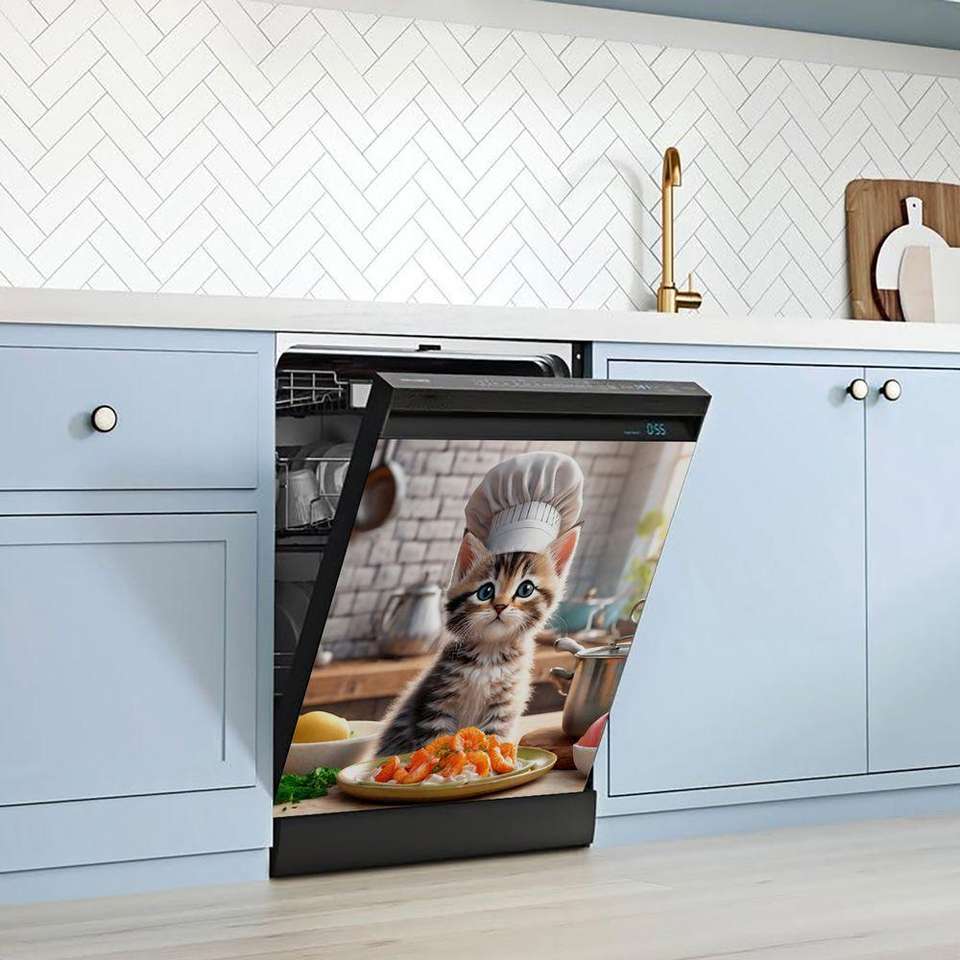 Pegatina magnética para cubierta de puerta de lavavajillas con tema de Chef de gato, 1 pieza, fácil de limpiar para lavavajillas, refrigeradores, piezas de electrodomésticos de cocina