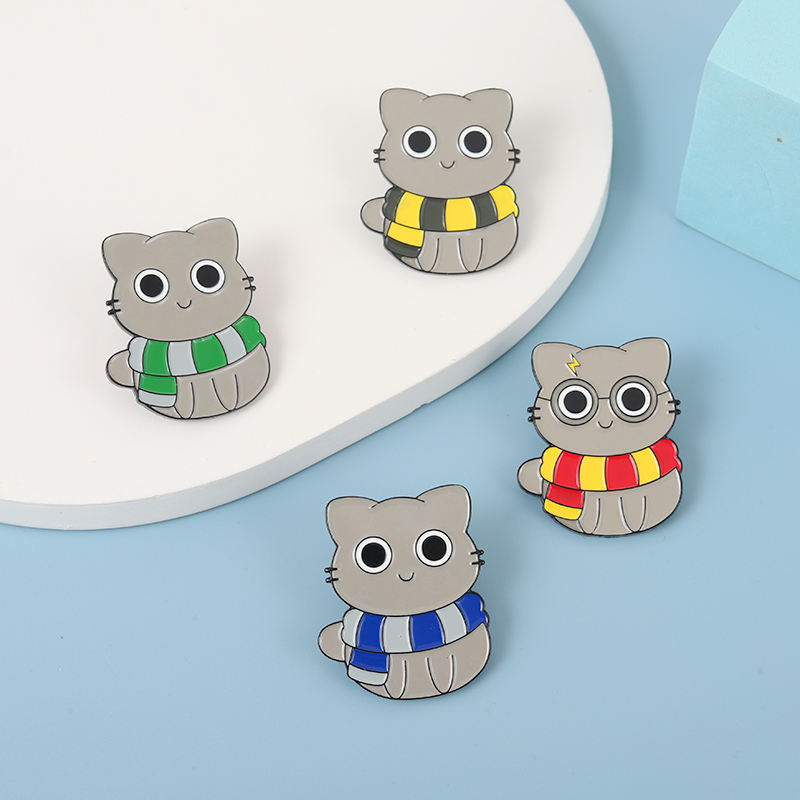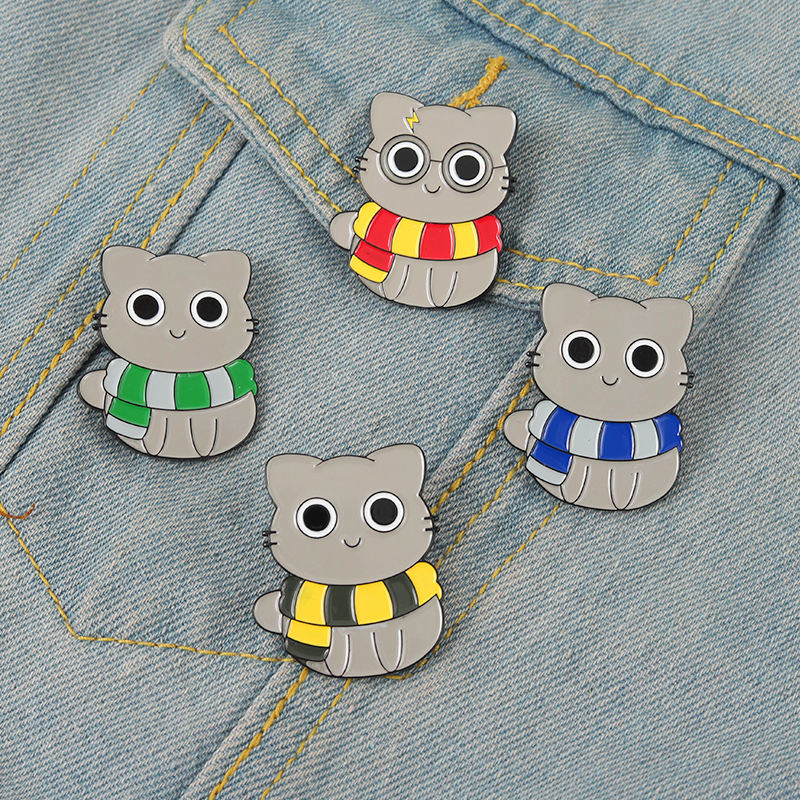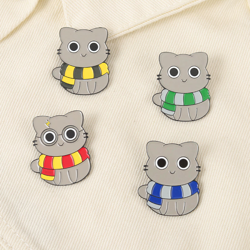 Pin de insignia de escuela mágica de gato, Pin personalizado de brujería, bufanda a rayas para gatito, ropa de animales, Pin de solapa de esmalte duro