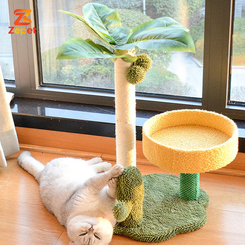 Poste rascador para gatos con diseño de hojas verdes y cuerda de sisal, para gatos de interior, productos para mascotas