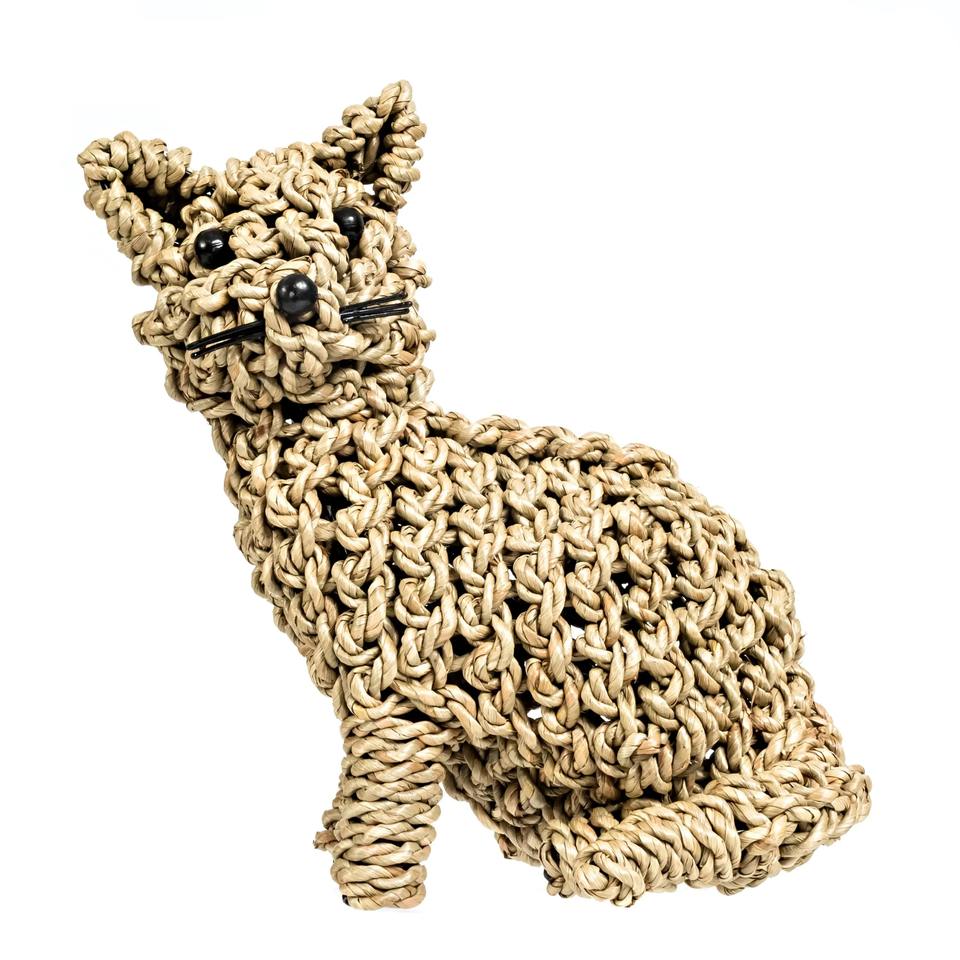 Adorno de artesanía Seagrass en forma de gato:Tamaño: L7 x H11 pulgadas