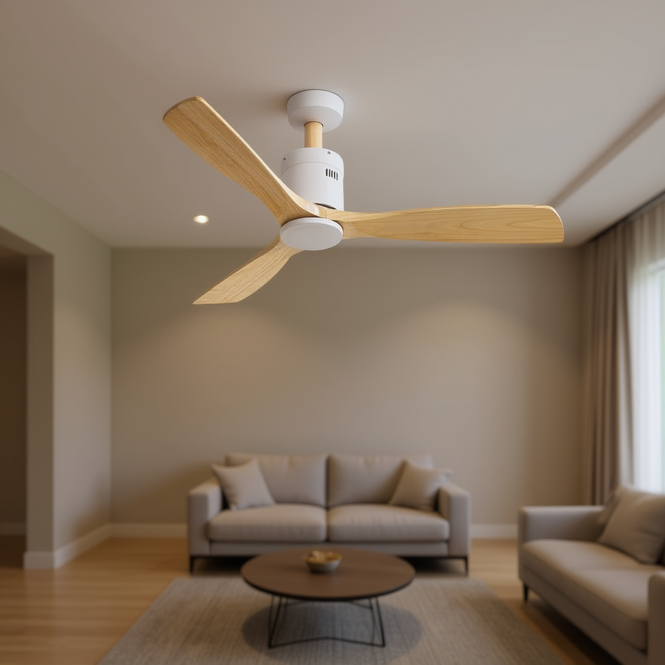 Ventilador de Techo de 52 Pulgadas con 3 Aspas de Madera, Motor DC, Control Remoto, Silencioso, para Sala de Estar
