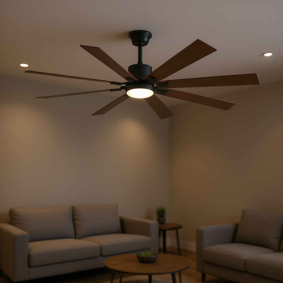 Ventilador de Techo de 72 Pulgadas, Madera de Nogal y Hierro, LED, 8 Aspas de Madera, Control Remoto, Motor DC, 6 Velocidades, Reversible, Silencioso, para Sala de Estar