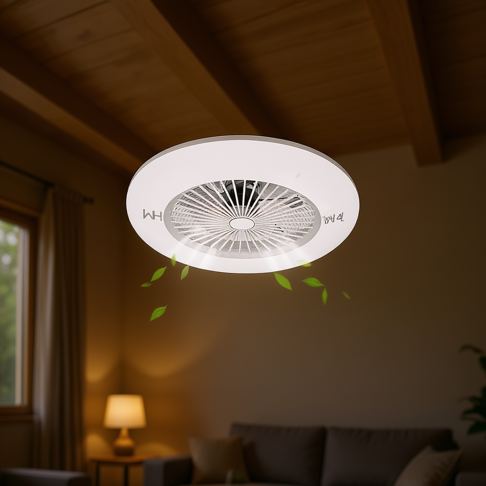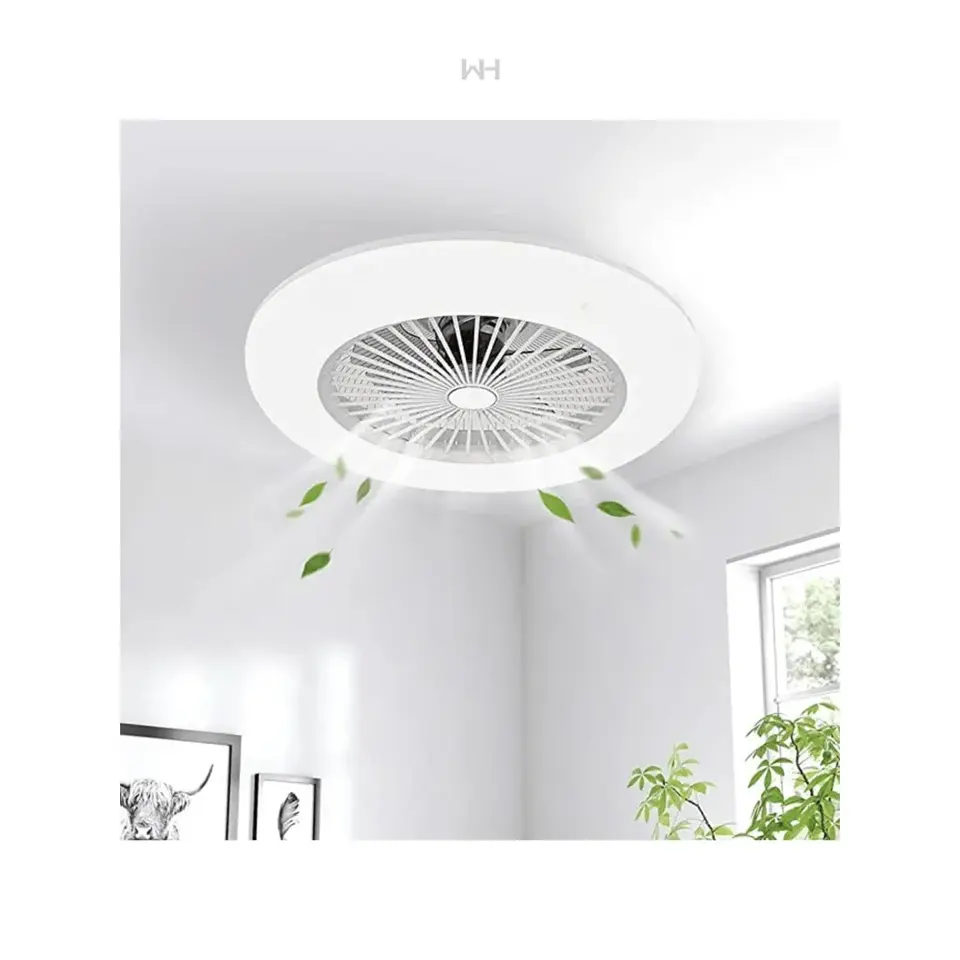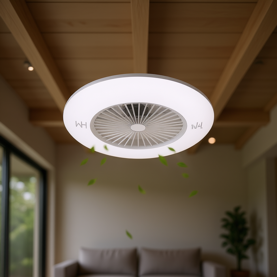 Ventilador de Techo LED Blanco de Estilo Moderno con Control Remoto, Motor DC de 60W, 3 Aspas, 4 Velocidades, Regulable, de Montaje Empotrado, Material ABS para Uso Doméstico