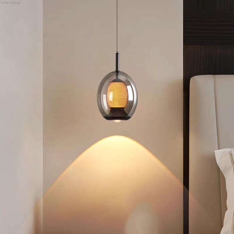 Lámpara Colgante de Cristal Industrial:Lámpara colgante con pantalla de cristal