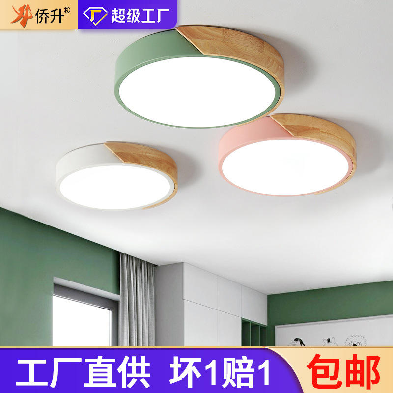 Lámpara de techo LED redonda de diseño de madera, estilo nórdico minimalista para sala de estar y dormitorio, iluminación Zhongshan