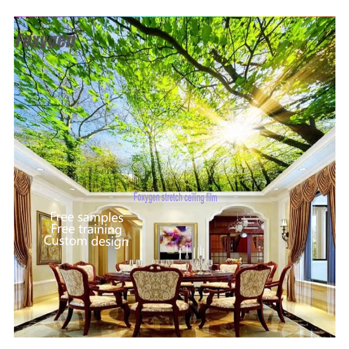 Paneles de Techo para Decoración de Interiores, PVC Ignífugo, Aislante Térmico, Absorbente de Sonido, Impresión Digital 3D, Tela Elástica para Techo