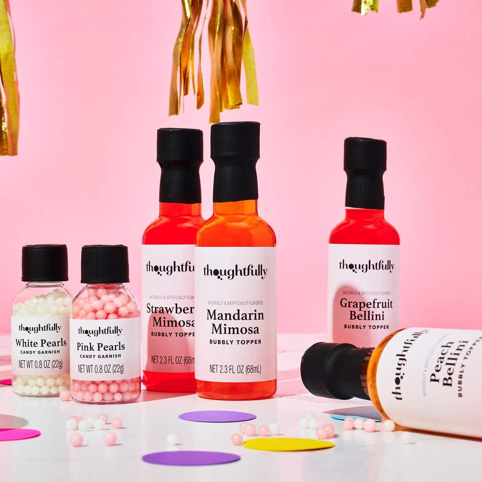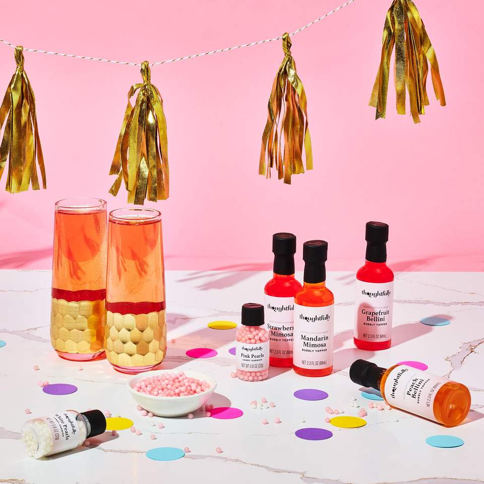 Caja de Regalo con Decoraciones para Cócteles Espumosos, Decoraciones de Cristal Hechas a Mano con Mandarina, Fresa, Pomelo y Perlas - Mezclador de Bebidas Gourmet