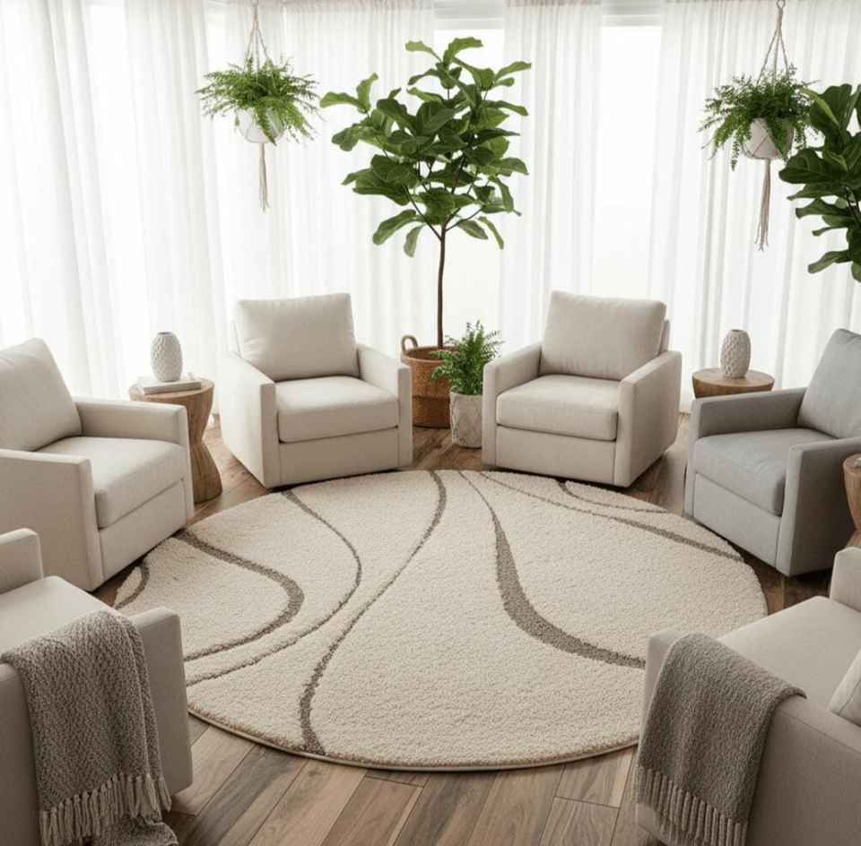 Alfombra Redonda de Microfibra Celestial Shaggy, Suave y Afelpada, Antideslizante, Resistente a las Manchas, Estilo Moderno, Decoración para Sala de Estar y Dormitorio