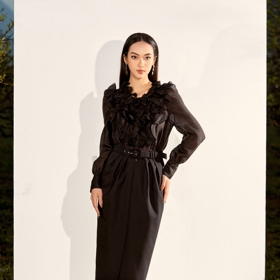 Decoración:"Detalle de cuello con volantes con tecnología de corte por láser
