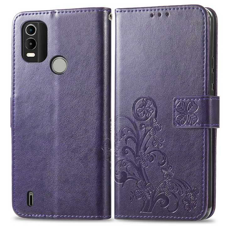 Clover design wallet PU Flip case for Nokia C21 Plus