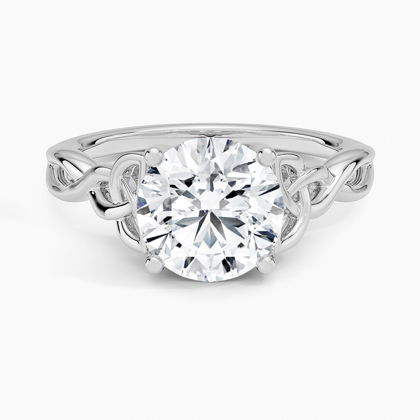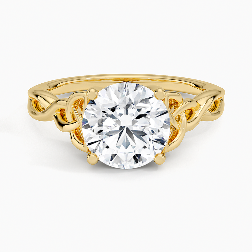 Anillo de Compromiso de Moissanita con Tres Piedras y Nudo Celta de Amor e Infinito, Chapado en Oro de 14K, Corte Redondo, Anillo Nupcial con Certificado GRA