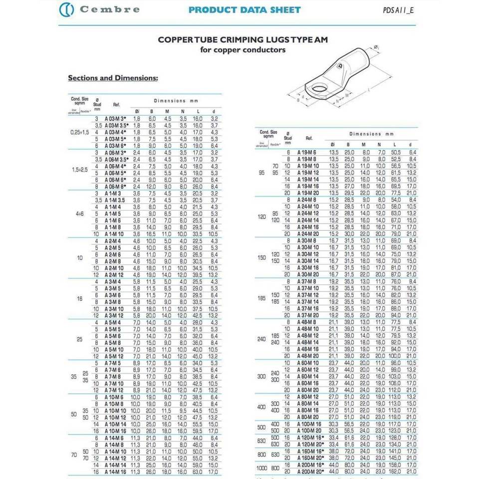 Cembre Terminal tubular 70mm ² M8