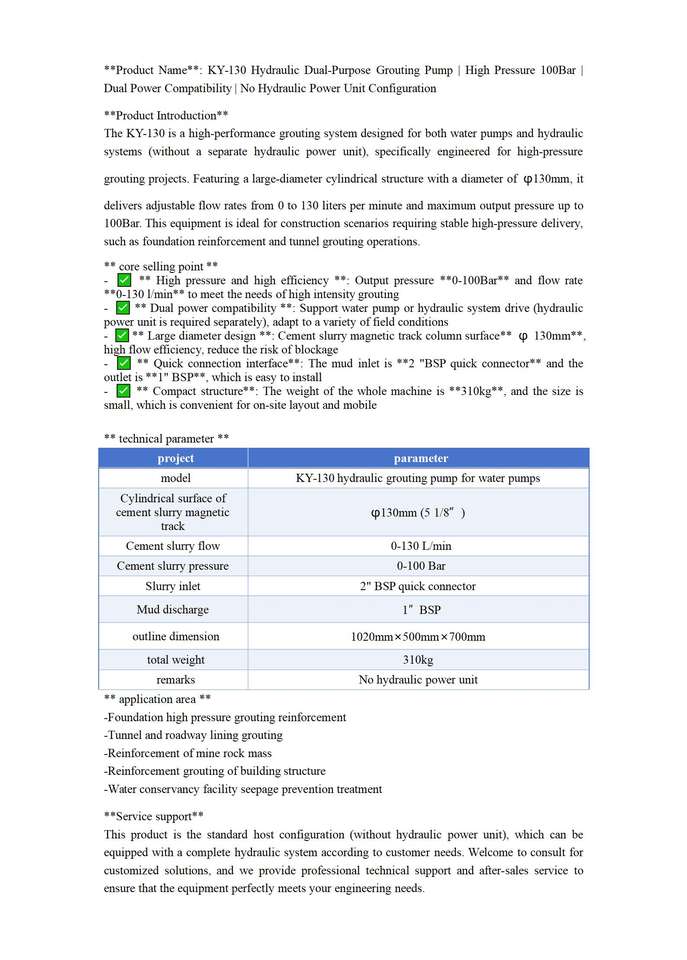 Cement slurry flow rate 0-130 L/minProductividad