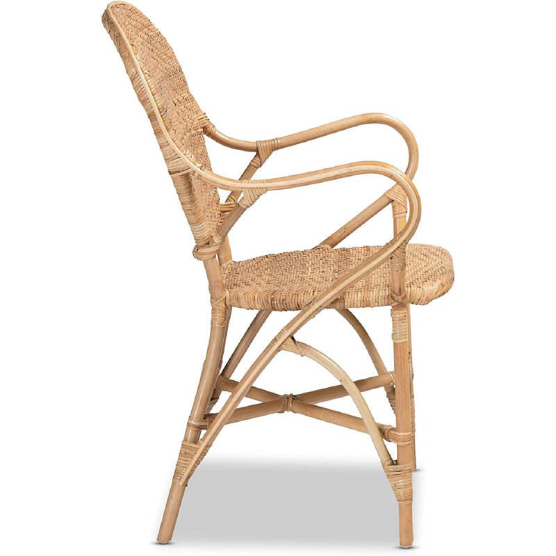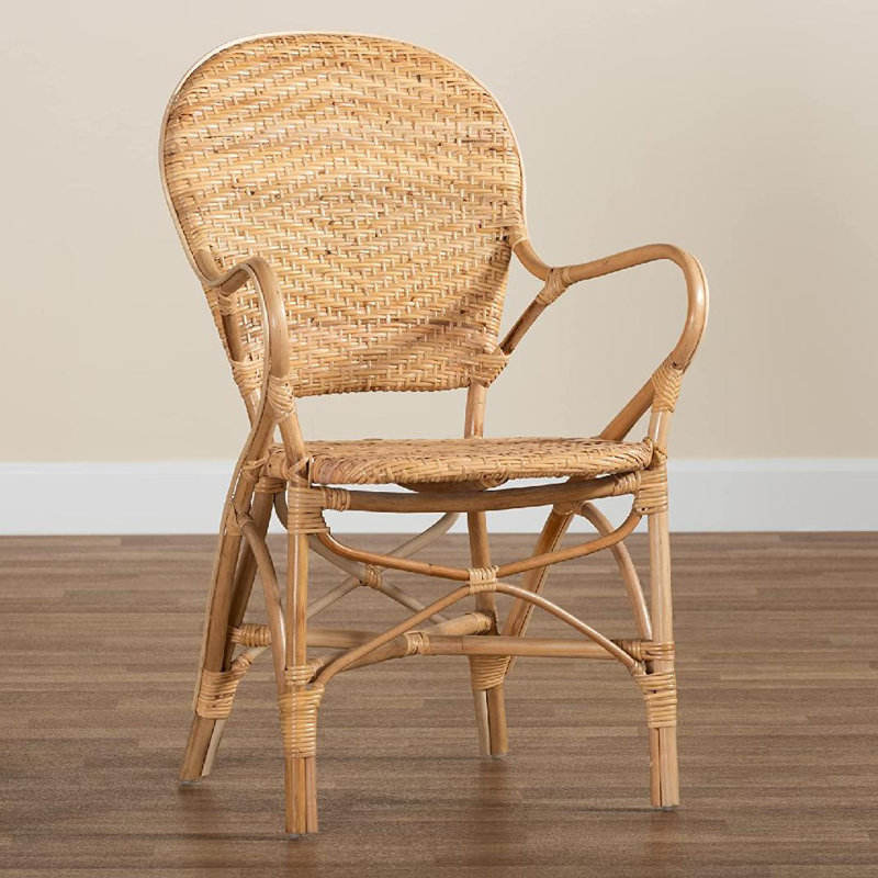 Sillón Censu de ratán sólido, Marrón Natural, diseño contemporáneo, luz extensible para el hogar, oficina, cafetería, restaurante, uso en comedor