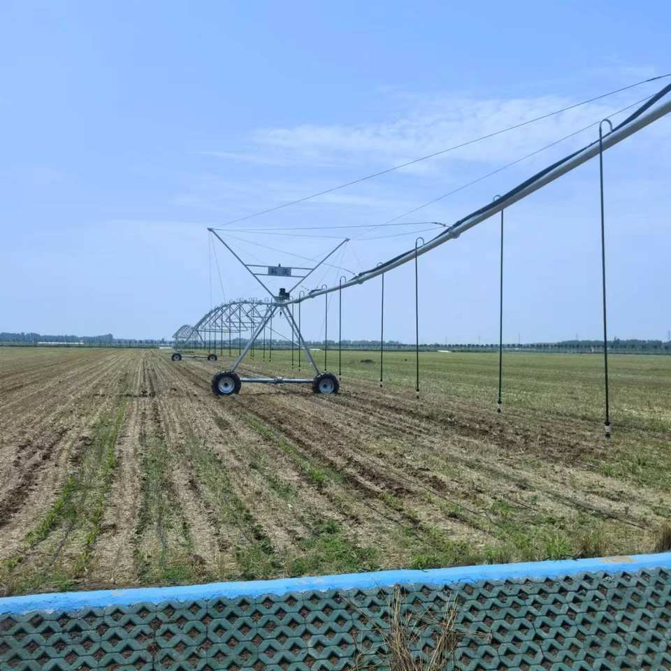 Sistema de riego de pivote central con boquillas de baja presión y diseño eficiente en agua