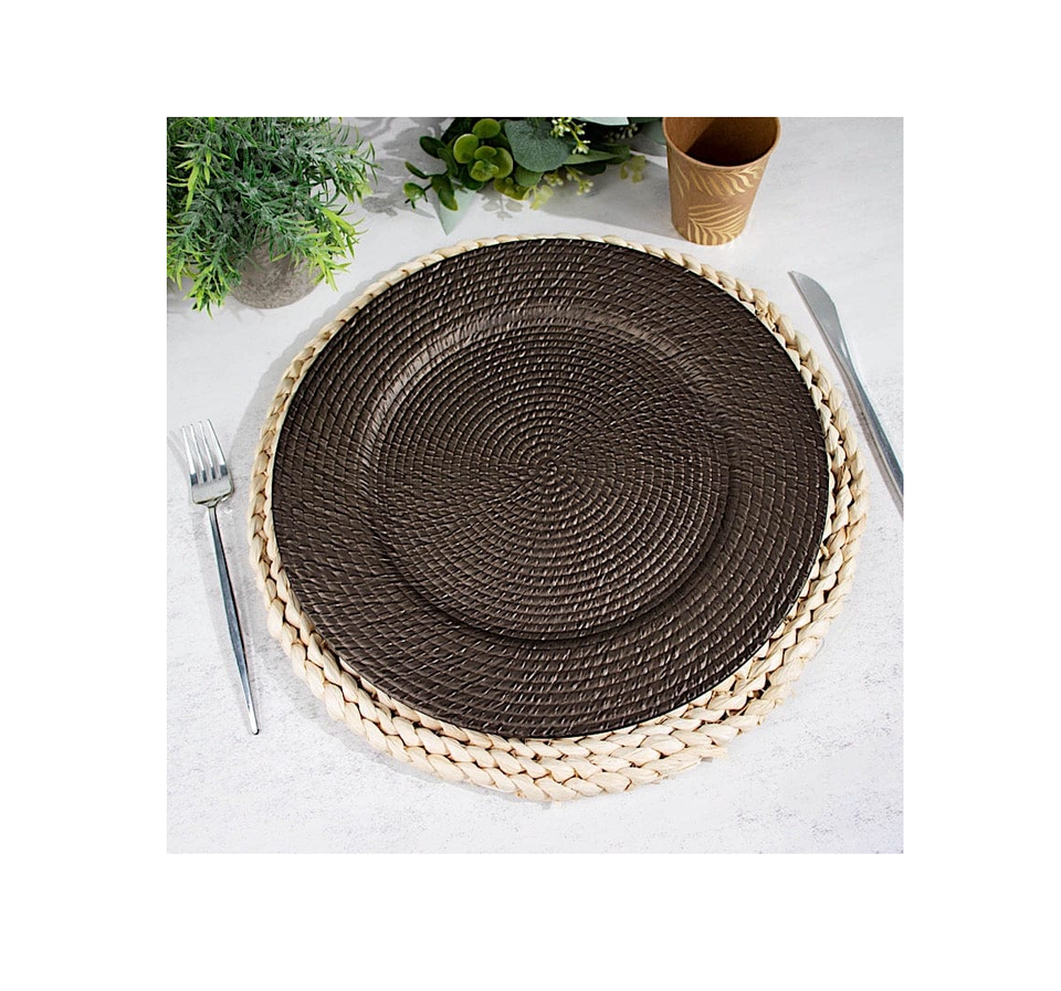 Centros de mesa Placa de cargador de ratán Material natural con tejido elegante Precio al por mayor perfecto para platos de ajuste de mesa