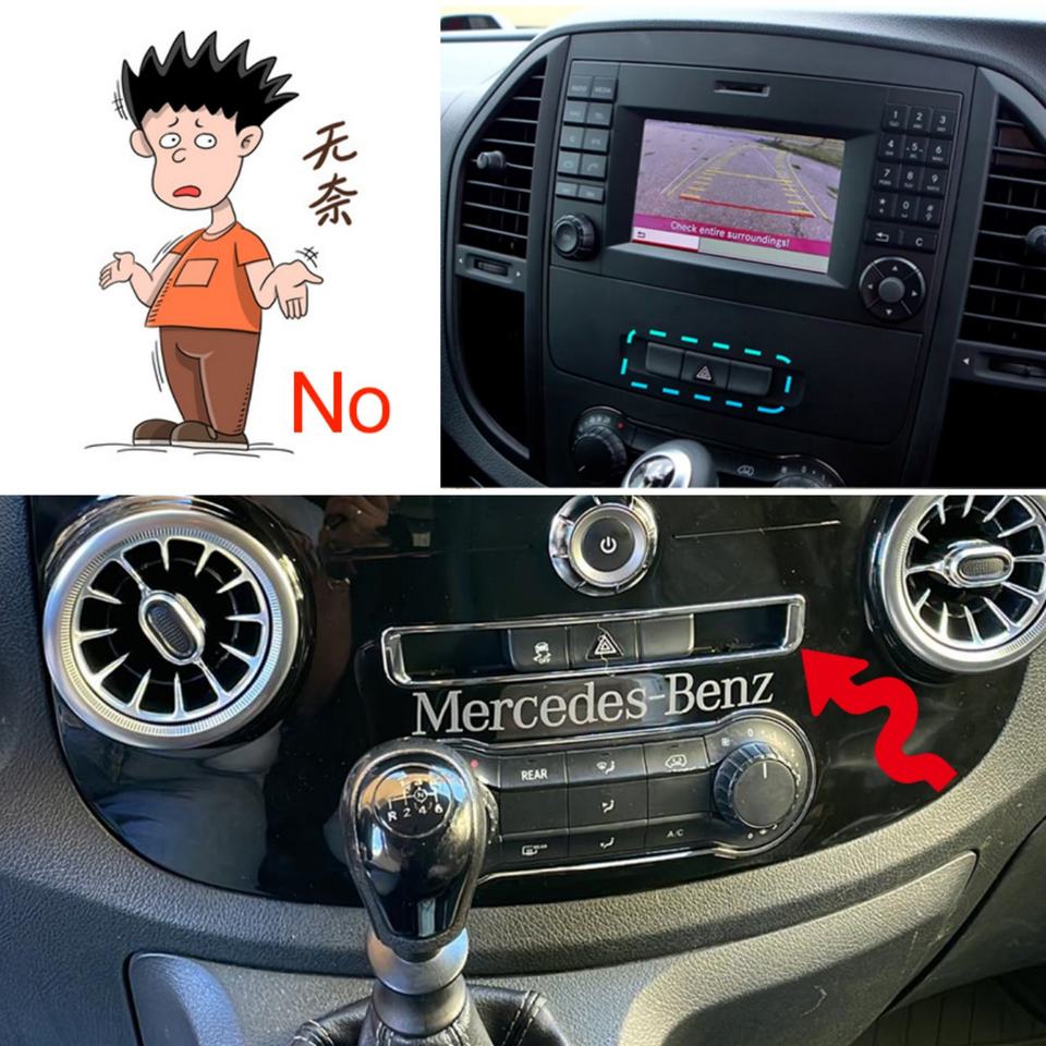 Barra de Botones de Luces de Emergencia del Panel Central Compatible con Pantallas Android para Mercedes Benz Vito 114 Mixto W447 2018, Botones de Radio