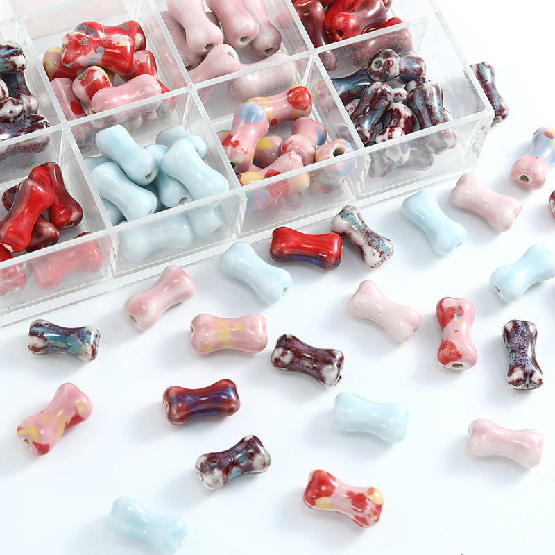 Cuentas de hueso de cerámica para la fabricación de joyas, cuentas espaciadoras artesanales DIY, cuentas colgantes de cerámica hechas a mano para pulseras