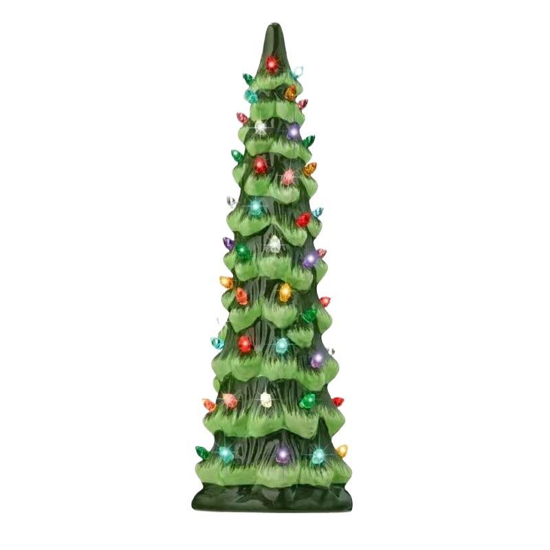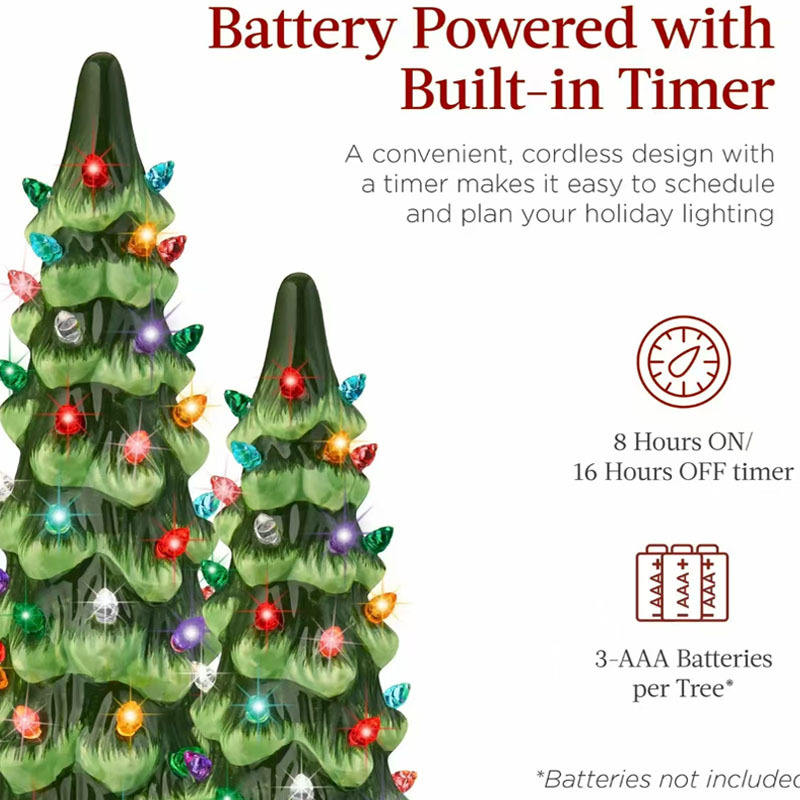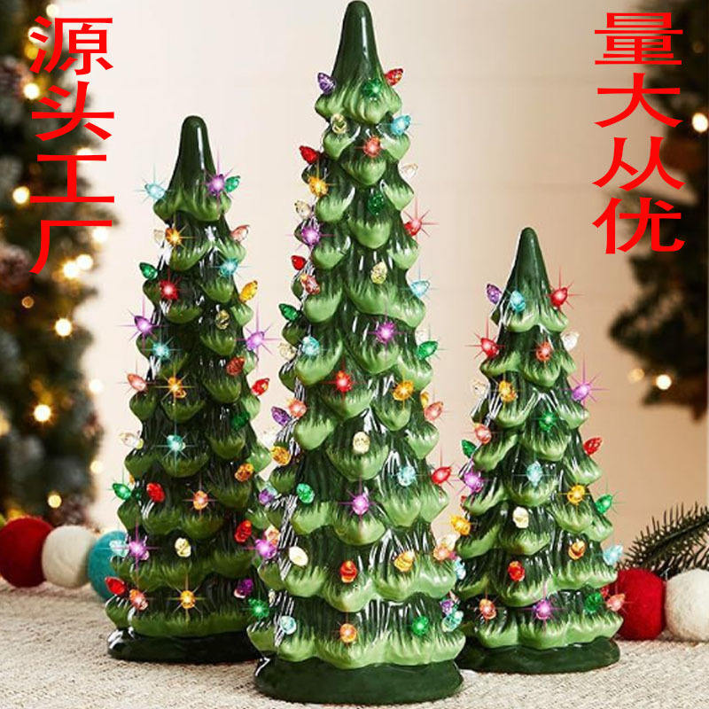 Juego de luces de cerámica para árbol de Navidad, juego de 3 luces de colores cálidos, decoraciones iluminadas que funcionan con pilas para exhibición navideña