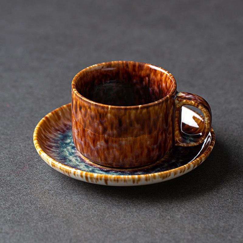 Juego de Taza y Platillo de Cerámica para Café, Alto Valor Estético, Colorido, Esmaltado, Creativo, Diseño Moderno Minimalista, Regalo para Fiestas