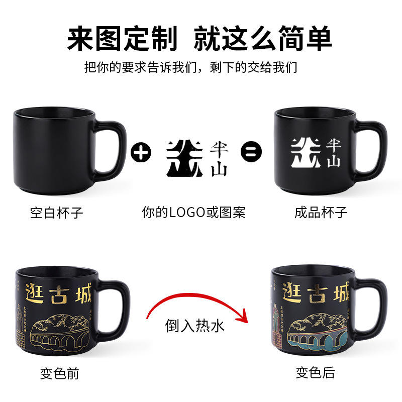 Taza de Café de Cerámica de 350 ml que Cambia de Color con Impresión de Logotipo para Regalos Empresariales, Recuerdo de Turismo Cultural