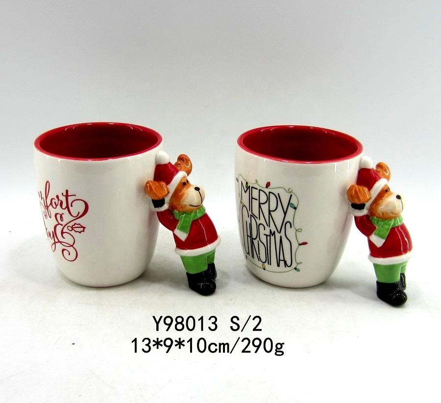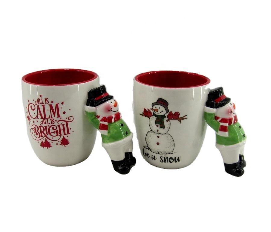 De cerámica coffeee tazas con muñeco de nieve manejar