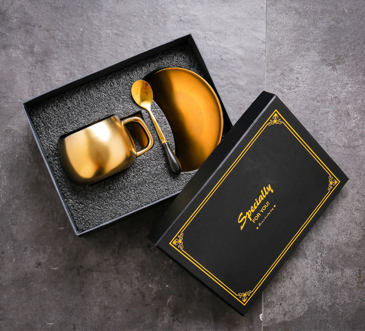 Juego de tazas de té de café turco capuchino Espresso de porcelana con mango de borde dorado de lujo esmaltado de cerámica con caja de regalo