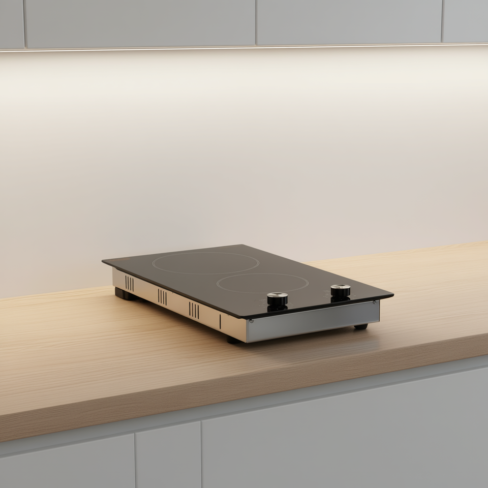 Placa de Cocción de Cerámica de 20.1x11.6 Pulgadas, 2 Quemadores, Electrodoméstico de Cocina Eléctrico Integrado