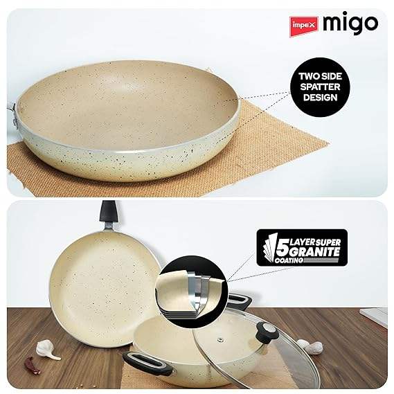 Juego de Utensilios de Cocina de Cerámica de 6 Piezas con Base de Inducción, Sartén Antiadherente con Tapa, Sartén para Freír, Sartén Tawa, 2 Espátulas, Libre de PTFE, PFOA y Metales Pesados