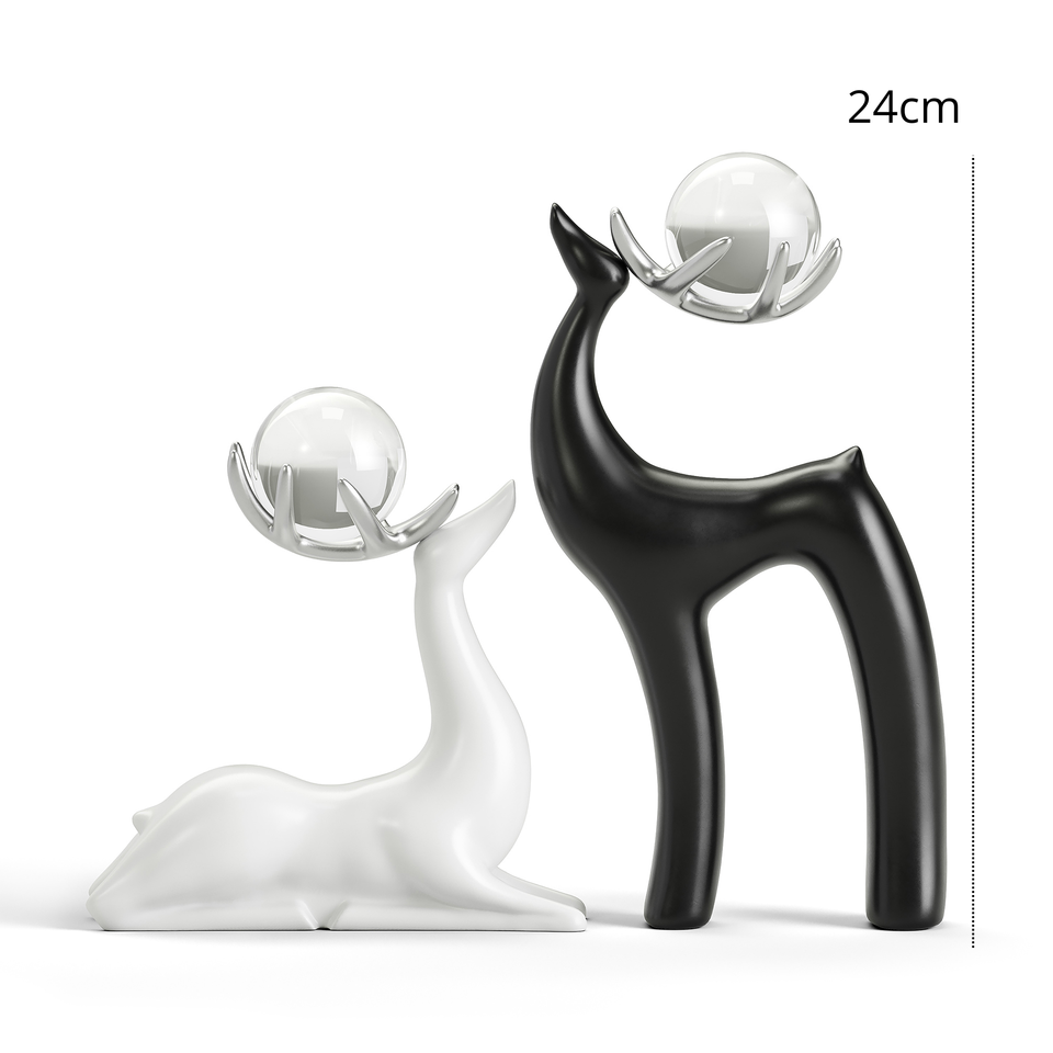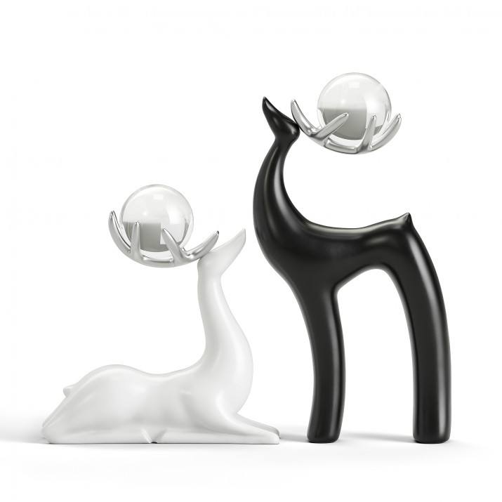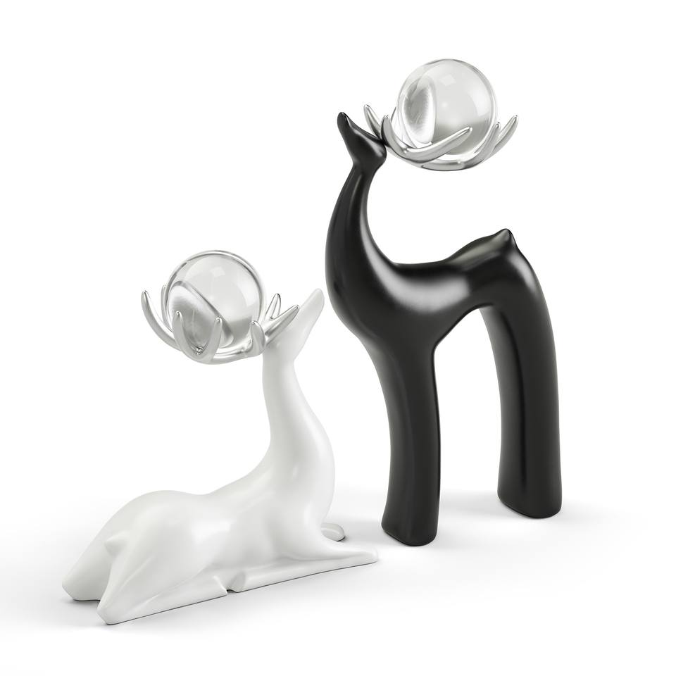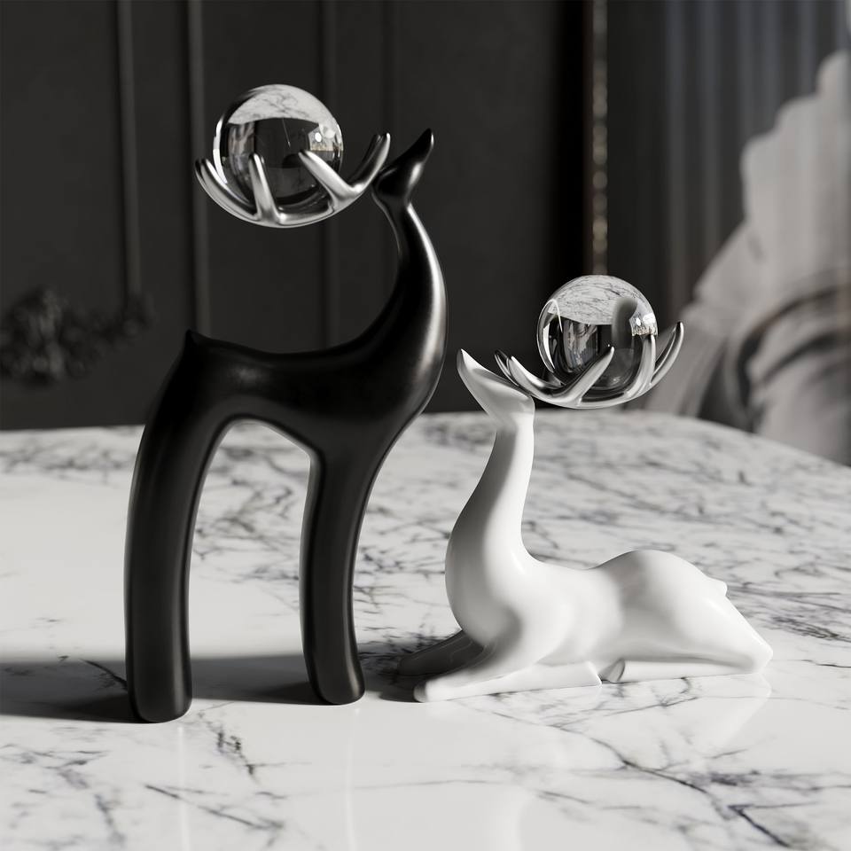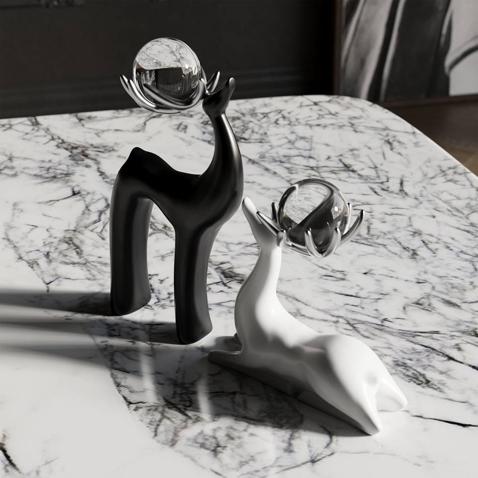 Decoración Navideña de Ciervo Minimalista de Cerámica Hecha a Mano con Cristales Plateados y Blancos