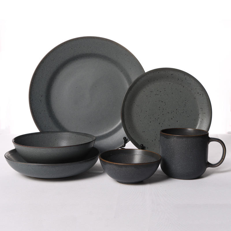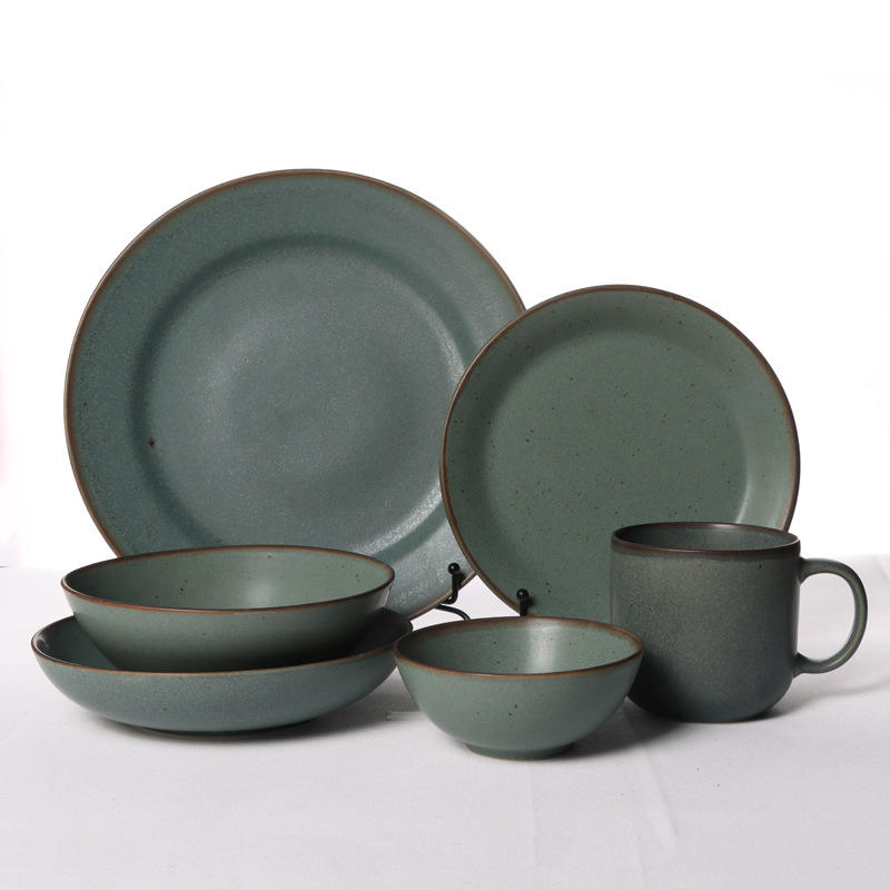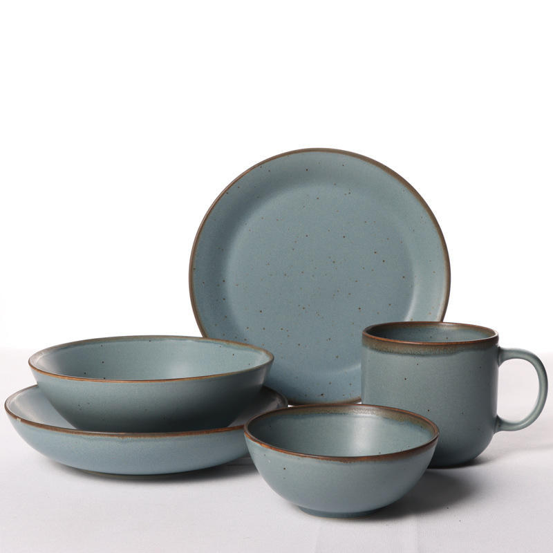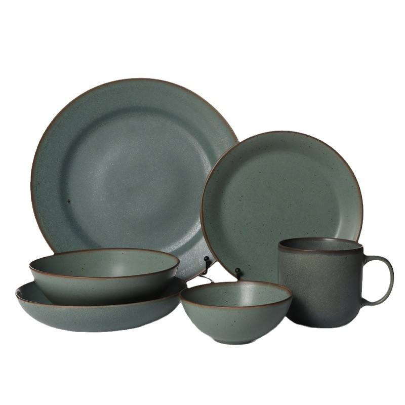 Juego de Vajilla de Cerámica, Platos Redondos, Tazones, Taza, Esmalte Reactivo, Apto para Lavavajillas, Estilo Sencillo, Vajilla para el Hogar