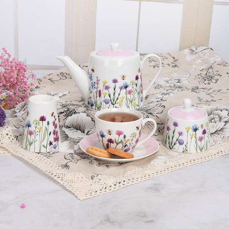 Home use bone china teaware afternoon tea set with pot cup saucer milk jar sugar bowl