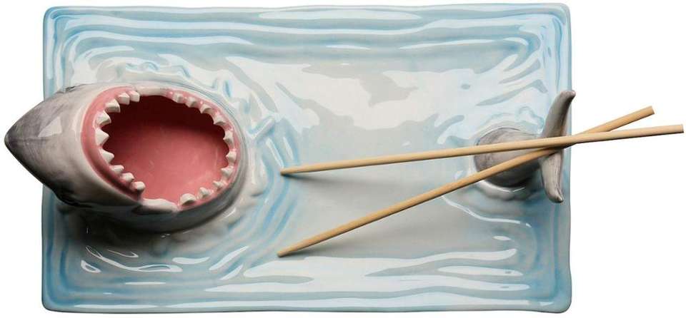 Plato de cerámica pintado a mano para servir Sushi, cerámica pintada a mano, Shark Attack