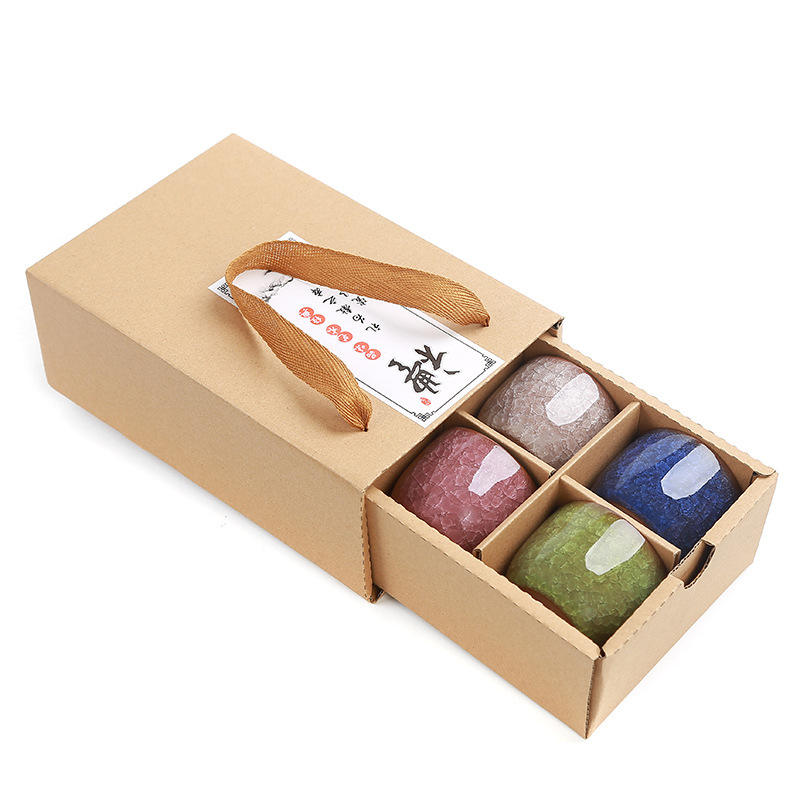 Juego de té de cerámica Kung Fu con esmalte craquelado efecto hielo y taza de café marmoleada, en caja de regalo