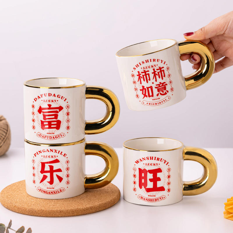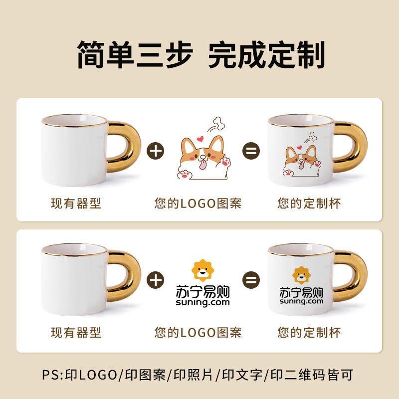 Taza de cerámica con borde dorado, impresión de letras, taza de café, logotipo personalizado, regalo para uso general