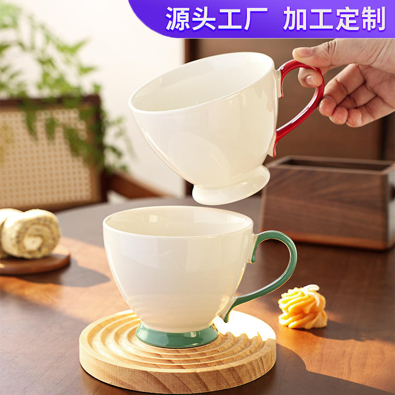 Taza de Cerámica de Porcelana, Color Sólido Rojo Verde, Apta para Lavavajillas y Microondas, Taza de Regalo para Oficina