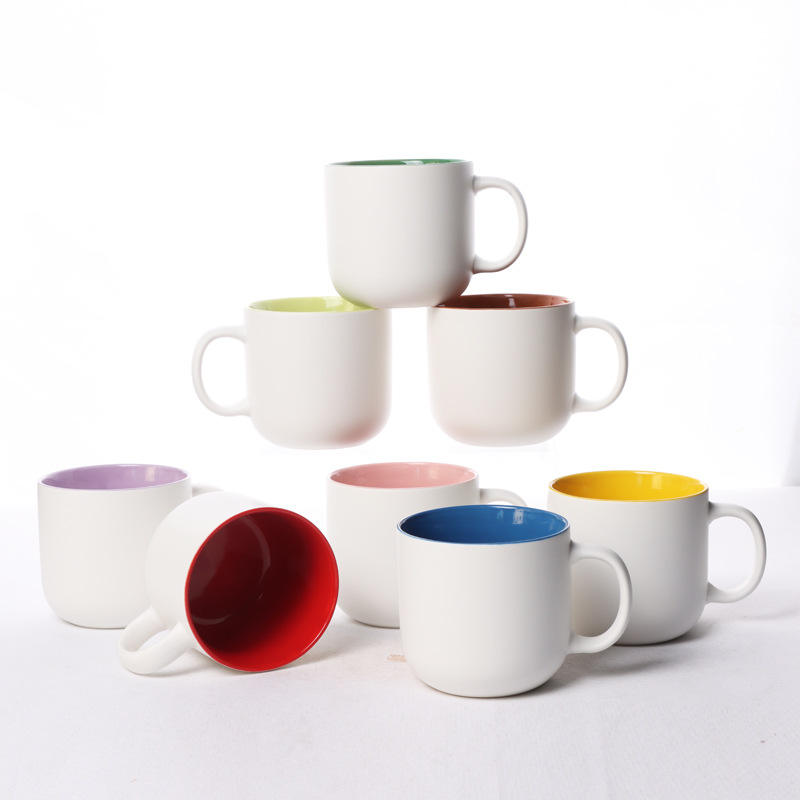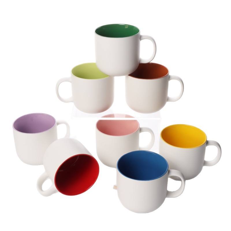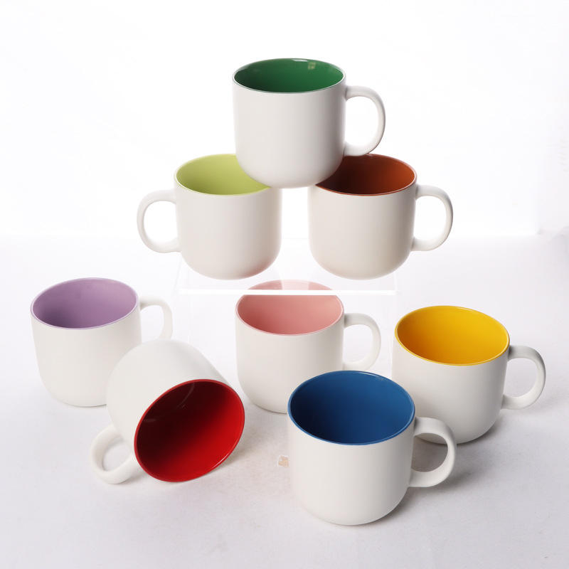 Taza de Cerámica de Dos Tonos con Interior Colorido, Diseño Minimalista, Gran Capacidad, para Uso Doméstico, Idea de Regalo