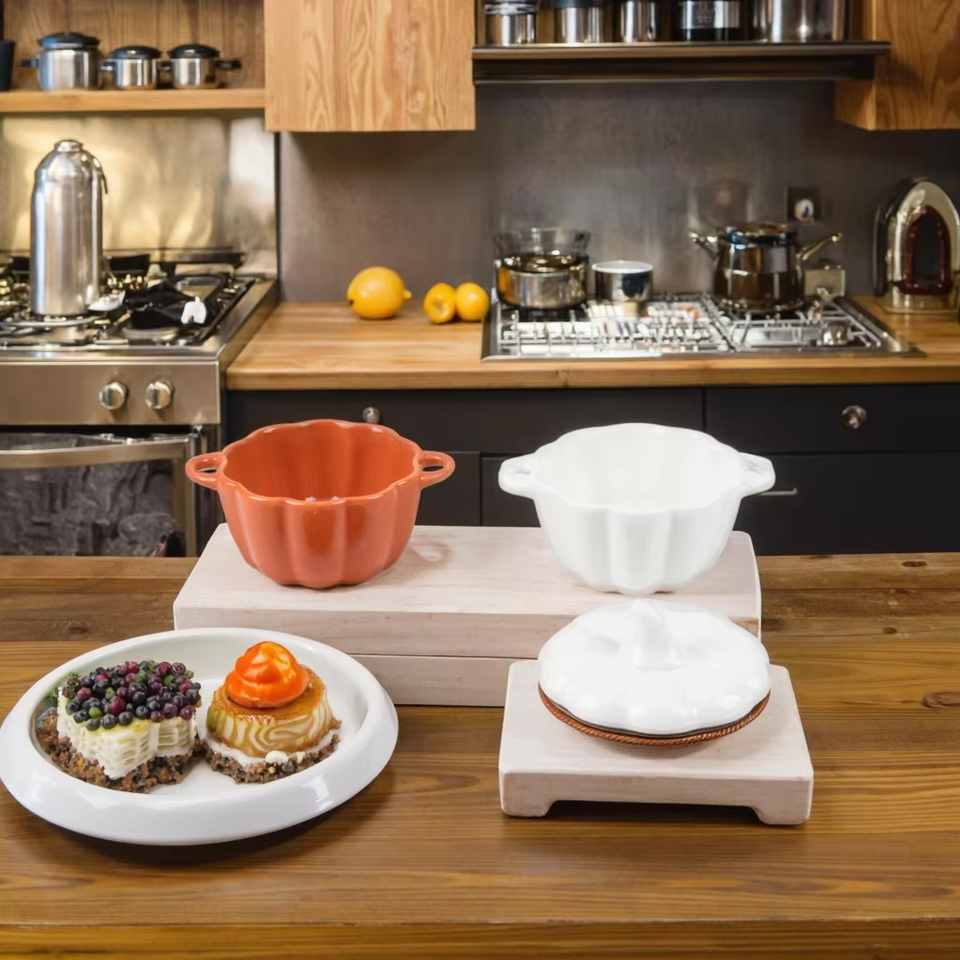 Juego de vajilla de cerámica para restaurante de calabaza, postre dulce desechable, ensalada, cuenco de arroz, tapa para pudín, guiso de sopa de huevo al vapor