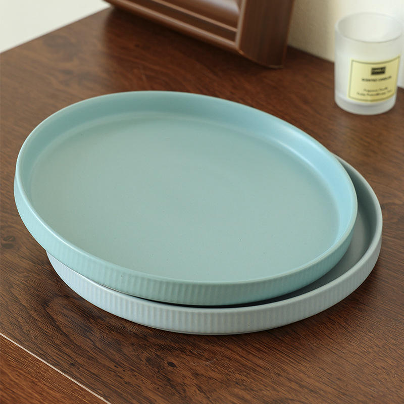 Platos redondos de cerámica de 8.3 pulgadas, diseño minimalista nórdico, juego de vajilla de color sólido para servir carne en la mesa de la cocina.