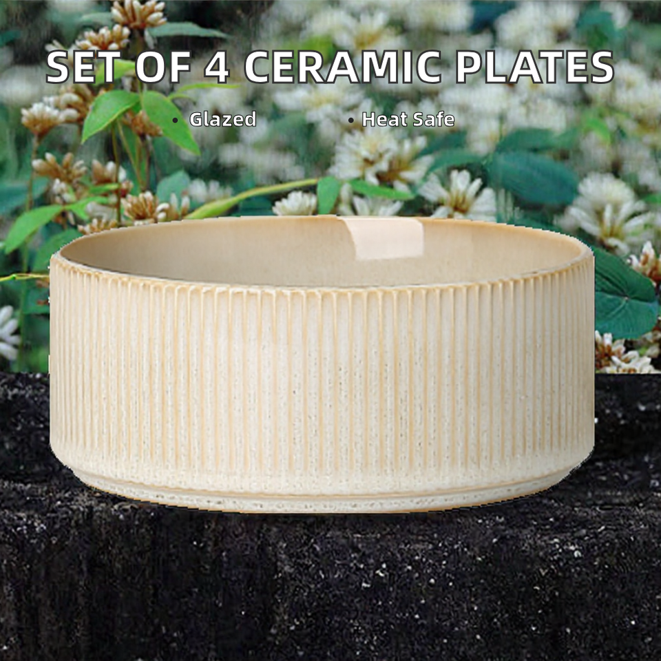 Juego de Vajilla de Cerámica para 4 Personas, 12 Piezas, Platos y Tazones con Esmalte Reactivo, Aptos para Microondas/Lavavajillas, Sostenibles, Modernos y de Lujo