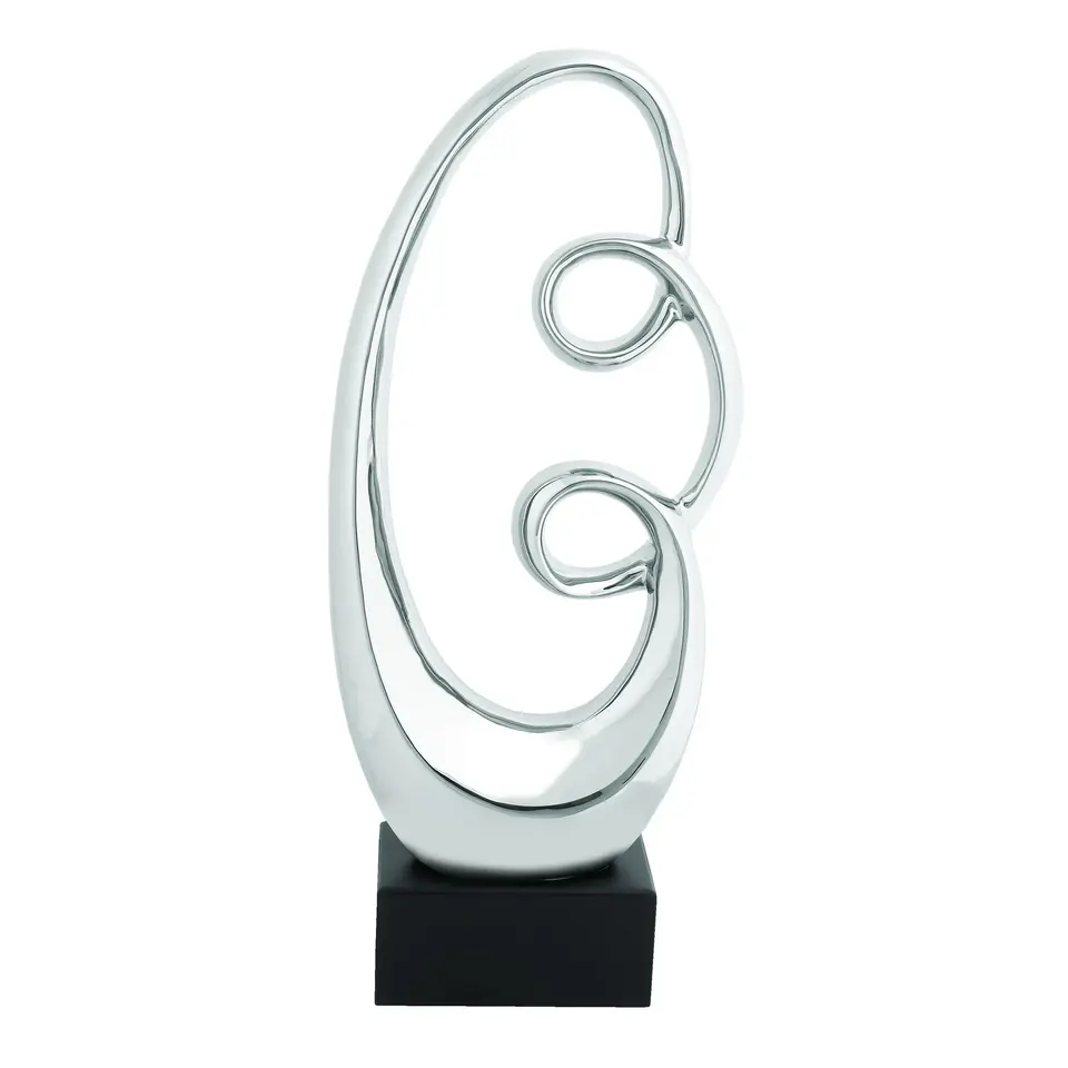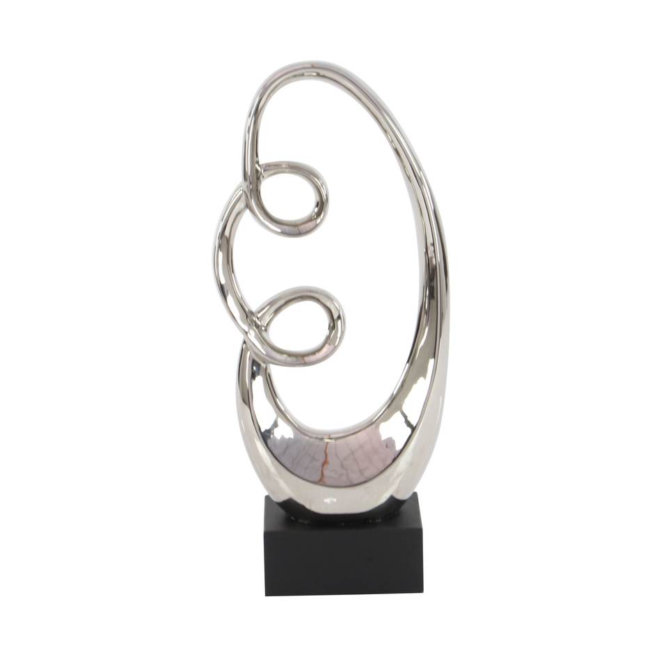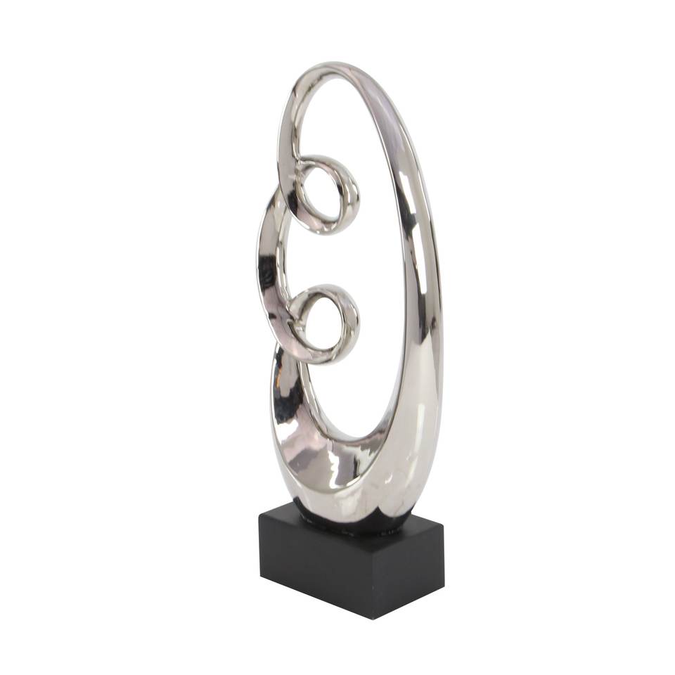 Escultura abstracta de remolino de cerámica con base de madera negra o LITTON LANE Mastercraft Escultura pulida moderna de bucle abstracto